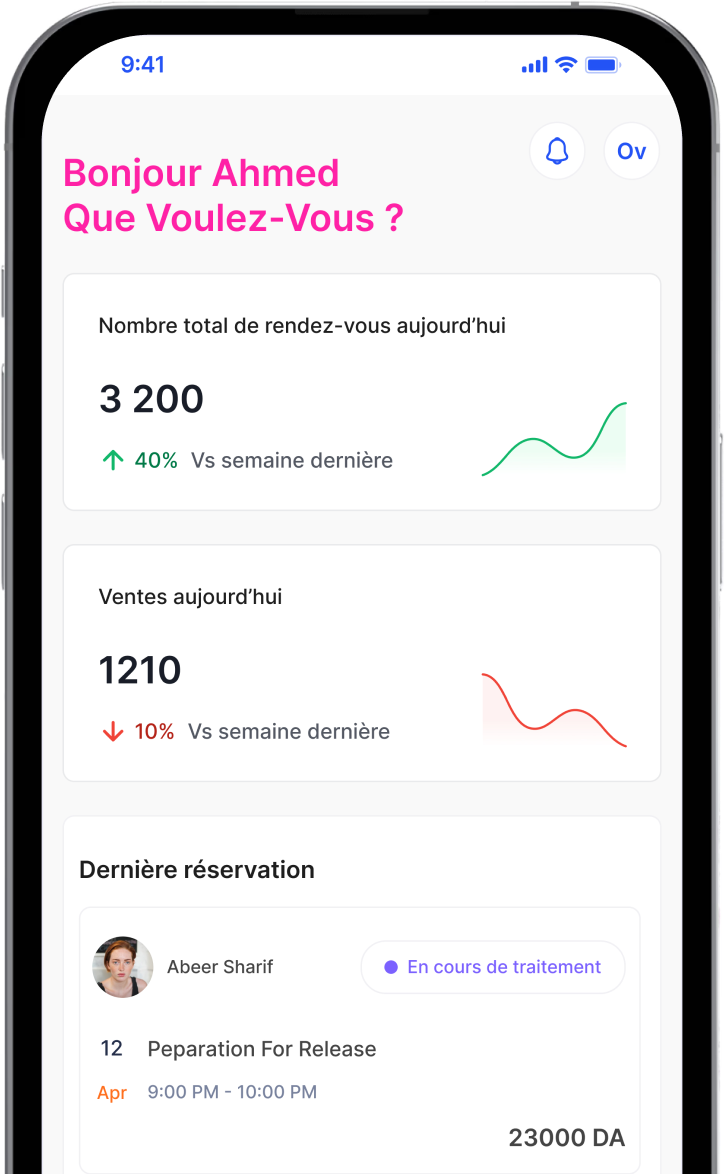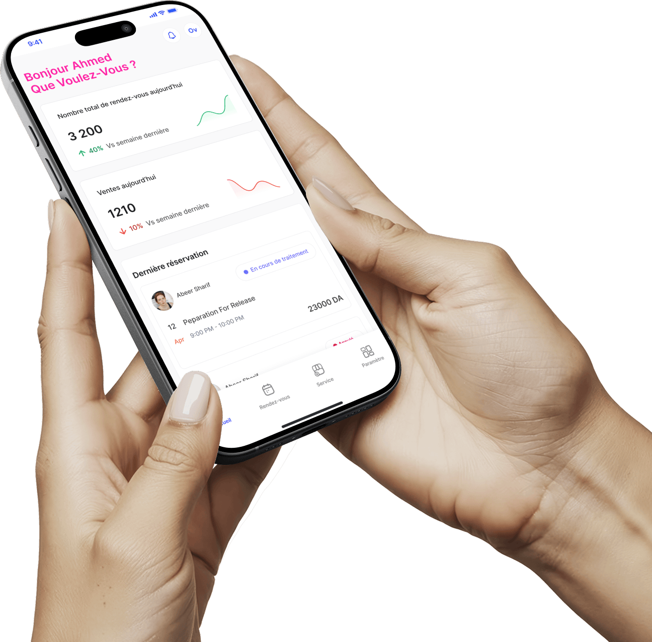 Tout est centralisé : services, prix, horaires, équipe, disponibilité.