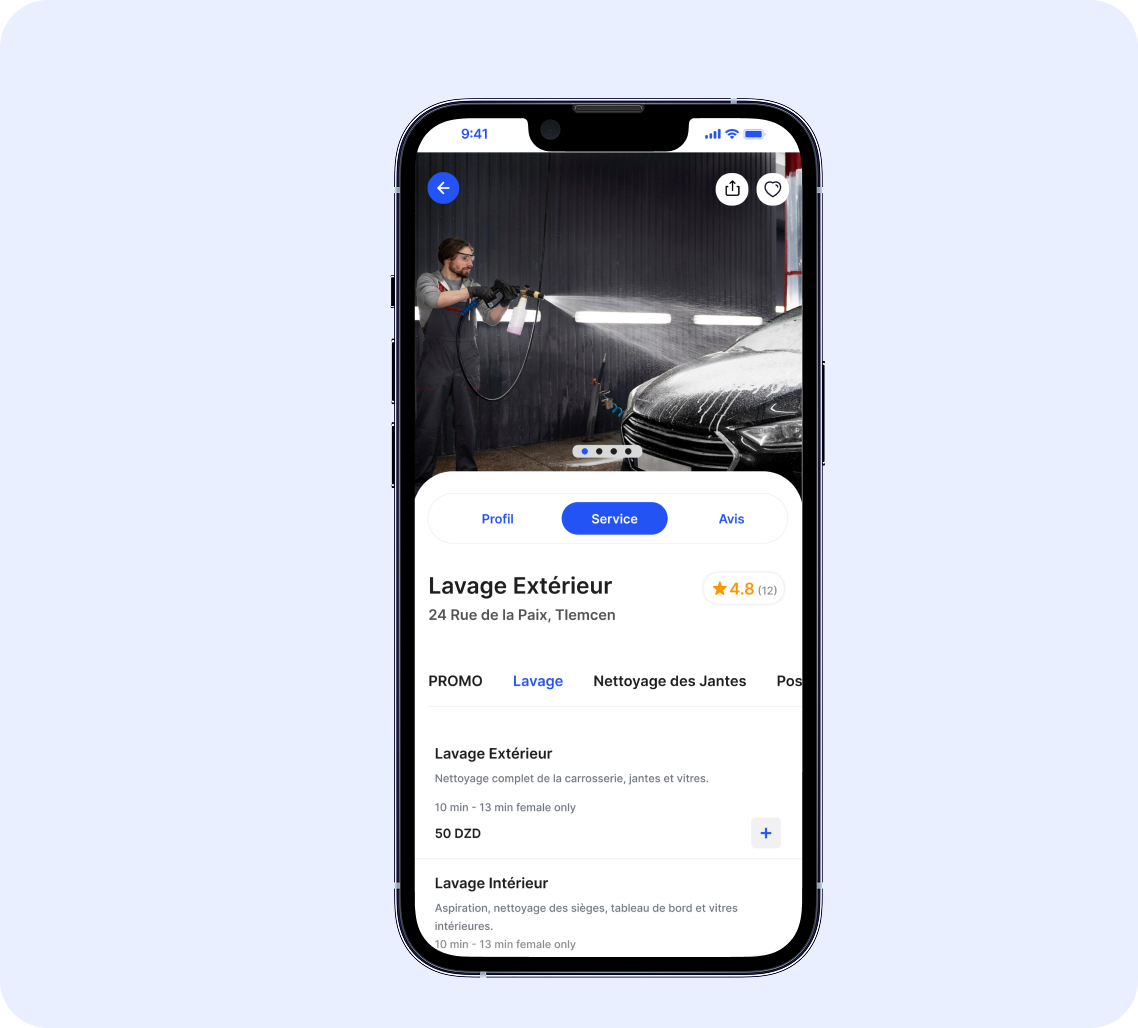 Les utilisateurs voient votre centre dès qu’ils recherchent un lavage autour d’eux.